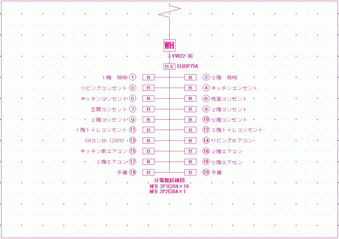 このような、基本をふまえたうえで分電盤結線図を描きます。