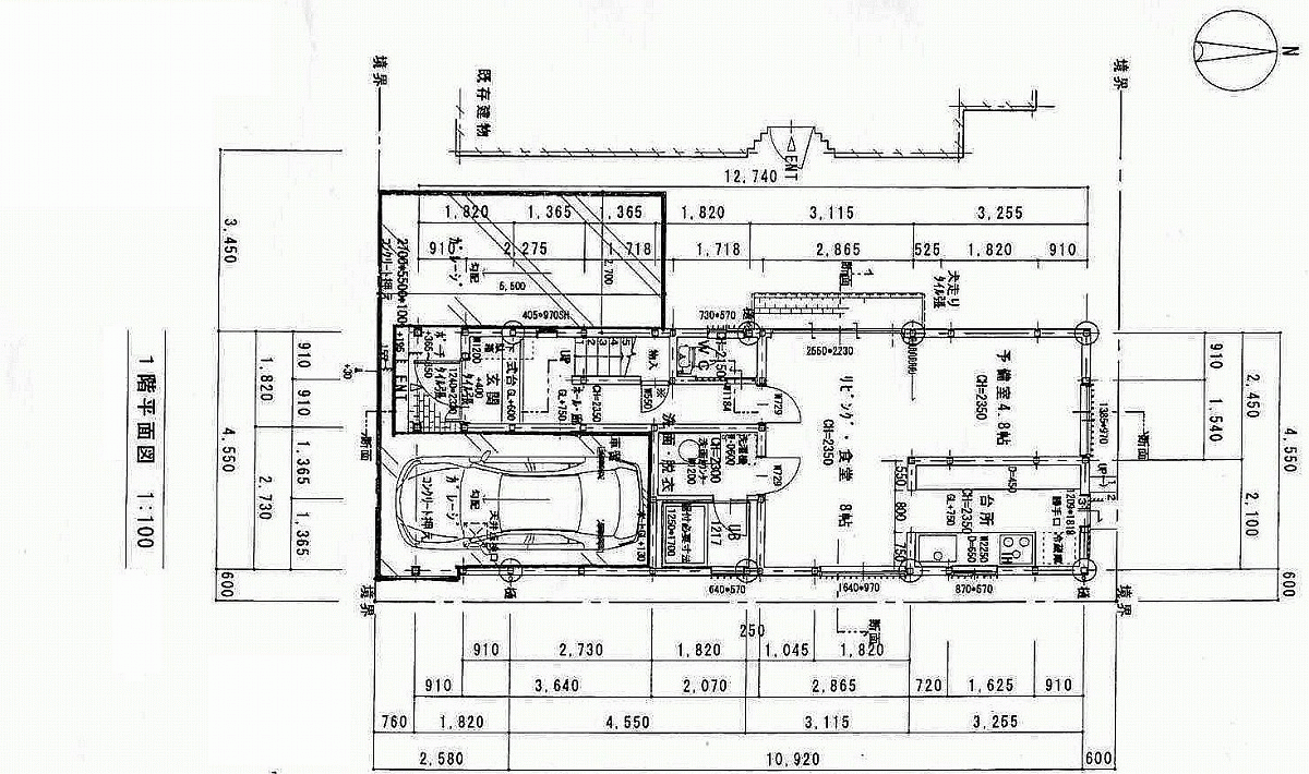 参考までに、実際に建築会社からいただいた1/100の図面をご覧ください。