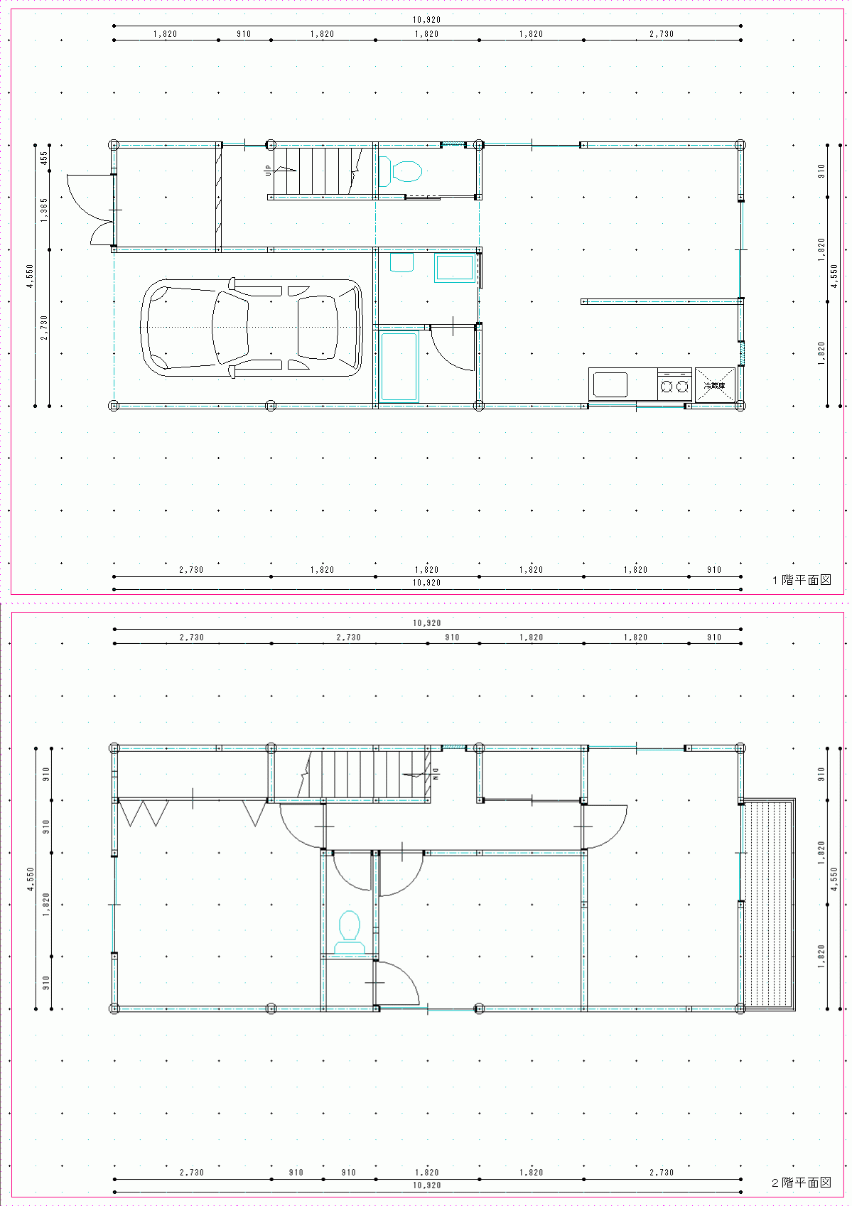 ちなみに、完成した平面図は、1階、2階両方を描きました。